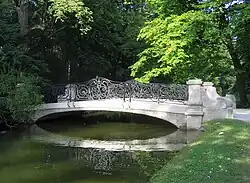 Once there existed sixteen flap bridges in the park, however the currently existing concrete bridges date from recent times (Nymphenbrücke 1902, Bogenbrücke 1903, Badenburgbrücke 1906, Northern and Southern Schwanenbrücke 1969), they are decorated and have wrought-iron railings. As the bridges cannot be opened, navigation of boats and gondolas is no longer possible. The Ludwig-Ferdinand-Brücke spans the Central canal in front of the Grand circle since 1892. Eventually it was upgraded for tram use.