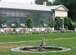 The exquisite composition of formal garden elements and English-style country park is considered a masterpiece of garden design and the spacious complex of palace and park has always been a popular attraction for local residents and tourists alike. To the east the park adjoins the palace buildings and the Grand circle. To the south and west the park is largely enclosed by the original Garden wall and borders the Botanical Garden to the north and beyond Menzinger Straße the park periphery partly merges with the Kapuzinerhölzl forest.[6][7]