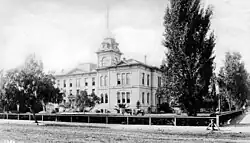 In 1896, the Boyle Heights building was destroyed by fire. The college temporarily relocated to the old St. Vincent's College campus on Hill Street before a new site was selected in Highland Park in 1898.[6] Eventually, the college erected three main buildings: the Academy Building, the Stimson Library, and the Hall of Arts and Letters (the Hall still stands today, converted to apartments).[8] The Highland Park site was also bisected by the tracks of the Santa Fe Railroad,[8] and was the site of two presidential visits, first by William Howard Taft in 1909 and subsequently by Theodore Roosevelt in 1911.[8]