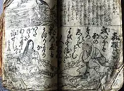 Hishikawa Moronobu (1618–1694) provided woodblock portraits for each of the poets included in the anthology.[4] Katsukawa Shunshō (1726–1793) designed prints for a full-color edition published in 1775.[5]