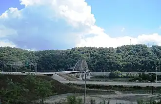 The Wellsburg Bridge is a tied-arch bridge that crosses the Ohio River and connects Brooke County, West Virginia and Jefferson County, Ohio (near the cities of Wellsburg, West Virginia and Brilliant, Ohio). The grand opening celebration was on September 20, 2023, and the bridge opened to motorists the following morning.[1] The project cost $131 million.[2] The bridge is to be renamed when the West Virginia Legislature convenes in January 2024. In preparation for the naming, West Virginia state senator Ryan Weld of Brooke County, West Virginia solicited input from local residents on social media.[2]