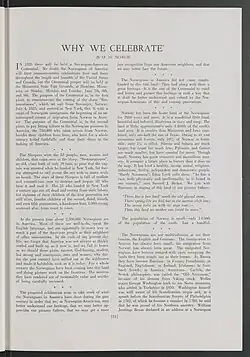 Olaf Norlie wrote an essay titled "Why We Celebrate" for the 1925 Norse American Centennial.