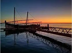 During the French occupation of the Algarve, during the Peninsular Wars, Olhão was notable for one of the few public uprisings against the occupiers, occurring on 16 June 1808.[3] This revolt culminated in the expulsion of the French from Olhão and, as a result, from the rest of the Algarve.[3] It was during this period, that a month later, a small group of 17 men embarked to Brazil, a Portuguese territory in South America where the king was living due to the French invasion, on a caique (a small sailing vessel) named Bom Sucesso, in the hope of promoting the Algarvean success to the Portuguese Court.[3] The crew brought an ex-official statement describing the audacious attitude of the Olhanese revolt.[3] A replica of the boat is moored at Olhão's waterfront.