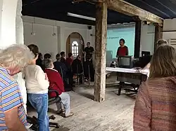 Open Shed's 200m2 rented premises were situated in central Penzance, next to the Savoy Cinema on the busy shopping street, Causewayhead.[4] Occupying the whole of the ground floor of Champions Yard, with a small space on the first floor, facilities include an electronics workshop, coworking space, café, bike kitchen, quiet space, large events room with projection facilities, equipment stores, and a small workshop. It encouraged knowledge exchange and collaboration between its members, who included programmers, web developers, electronic engineers, digital artists, practitioners from the digital humanities, bicycle mechanics, and other tech related fields. Open Shed provided physical space and facilities to encourage activities from these areas: "We're all about empowering people to take control of the technology which surrounds us all."[5]