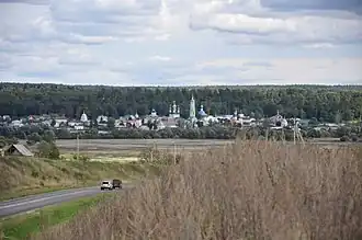 The Optina Pustyn (Russian: Óптина пýстынь, romanized: Óptina pústyn', literally Opta's hermitage) is an Eastern Orthodox monastery for men near Kozelsk in Russia. In the 19th century, the Optina was the most important spiritual centre of the Russian Orthodox Church and served as the model for several other monasteries, including the nearby Shamordino Convent. It was particularly renowned as the centre of Russian Orthodox eldership (staretsdom).