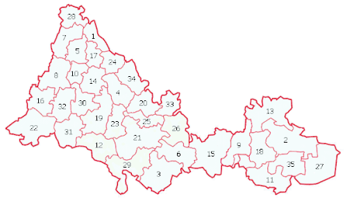 Kuvandyksky (number 15) and Gaysky (number 9) districts on the map of the Orenburg oblast.