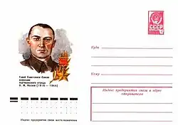 Osman Musayevich Kasayev (Russian: Осман Мусаевич Касаев; 11 October 1916 – 18 February 1944) was a Karachay Major in the Soviet Army during World War II who commanded a partisan detachment after his artillery division was defeated by the Germans during Operation Barbarossa. His detachment eventually became the 121st Partisan Regiment, and under his command the unit was credited with resulting the deaths of over 1,000 German soldiers before he died of injuries from an airstrike in 1944. In 1965, on the 20th anniversary of the end of the war, he was posthumously awarded the title Hero of the Soviet Union.[1]
