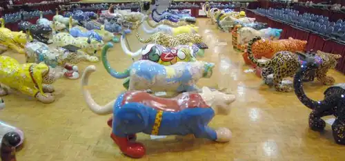 Just like Cincinnati's Big Pig Gig and Chicago's Cows on Parade, these fiberglass manatees were part of a 2004-2005 fund-raising effort for the foundation. A total of 43 colorfully decorated, lifelike fiberglass manatees took up residence throughout the city, beginning in September 2004—in time for Super Bowl XXXIX—and remained until the end of February 2005. They were cleaned up and prepared for the Great Sea Cow Roundup and Auction, held April 2 at the Jacksonville Fairgrounds.[4] After the Roundup & Auction concluded, the winning bidders loaded them up and moved their new artwork to back yards and business locations.