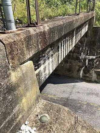 Along the right-of-way, disused tracks, bridges, overpasses, mileposts and embankments still remain.[5] The overpasses at Tappers Corner Road and Old Queen Anne's Highway, as well as bridges over Oldtown Branch, Forge Branch (Ford and Jarrel Branch), Peachblossom Creek and Trippe Creek are among the remnants.
