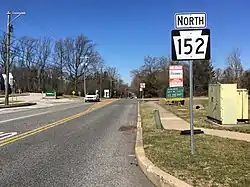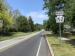 PA 152 was originally built as Limekiln Road in 1693. This road was used to transport lime from kilns in Upper Dublin Township.[7] The road was maintained by adjacent property owners.[8] In 1850, the Limekiln Turnpike Company was created to improve the roadway through the collection of tolls, boasting tollhouses at each end of the village of Dreshertown (now Dresher). The toll collection and tollhouses along the Limekiln Pike were abolished and removed in 1917.[9] When Pennsylvania designated legislative routes in 1911, what is now PA 152 did not get a route number.[10]