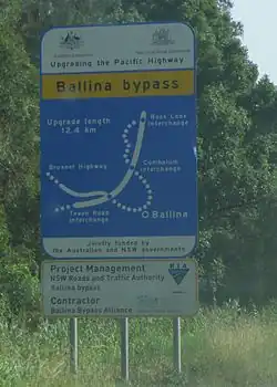A 2009 project sign for the Ballina Bypass, subsequently completed.