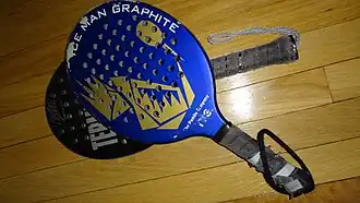 Paddle ball is a racquet sport that is played on a court half the size of a tennis court, using specialized paddles. The paddle is made of wood or graphite, and has holes to reduce air friction. The game is played in singles (two players) or in doubles (four players).