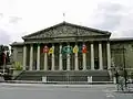 The logo of the Paris 2012 bid on the front of the Assemblée Nationale in Paris