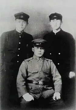 Park's schooling at Taegu was militaristic, especially as Japanese military officers were involved in running it. In fall, the entire school participated in enshū (演習)—military training programs. According to Lee, Park enjoyed and excelled in these aspects of the school. He took up kendo and became a trumpeter. His enthusiasm caught the eye of Lt. Col. Arikawa Keiichi (有川圭一; 1891–1945) of the Kwantung Army, who ran the military training programs and became fond of Park.[34]