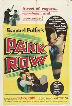 Park Row is a 1952 American independent[3] drama film starring Gene Evans as a New York City journalist who founds a new type of newspaper in the 1880s and Mary Welch as the established publisher who opposes him. It was written, directed, produced and financed by Samuel Fuller, himself a New York reporter prior to turning to filmmaking. It was his favorite film,[4] though it did not do well at the box office.