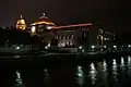 The Parliament House is a public building and a cultural landmark in Singapore. It houses the Parliament of Singapore, and is located in the Civic District of the Downtown Core within the Central Area. Within its vicinity is Raffles Place, which lies across from the Parliament House from the Singapore River, and the Supreme Court's building across the road. The building was designed to represent a contemporary architectural expression of stateliness and authority. The prism-shaped top, designed by President Ong Teng Cheong, was similarly a modernist take on the traditional dome.