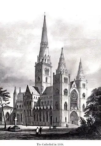 Reconstruction of Elgin Cathedral as it would have appeared in 1538 when Hepburn became bishop