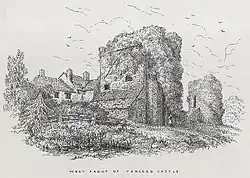6. ^ Page 82, Genealogy of the descendants of the Prichards, formerly lords of Llanover, Monmouthshire, with an appendix of the pedigrees of the houses, with which that family intermarried, Published: 1868, ..."Pencoed Castle" considered generally as the most ancient of the six castles of Wentwood Forest, of which Striguil was another....ruin consist chiefly of a circular arched gateway, and two pentagonal turrets, a round embattled tower, and some delapidated walls"...