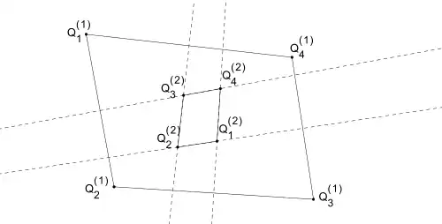 Suppose that the vertices of the quadrilateral are given by . Let be the perpendicular bisectors of sides respectively. Then their intersections , with subscripts considered modulo 4, form the consequent quadrilateral . The construction is then iterated on to produce and so on.