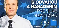 In the June 2009 election he was re-elected as the second of his party's MEPs.[8] His campaign slogan was "With Courage and Determination for a Strong Slovakia" (Slovak: S odvahou a nasadením pre silné Slovensko). He was MEP until 2014.[7]