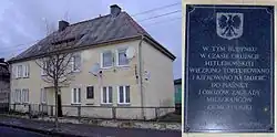 The prison in Puck where victims were held and tortured before being shipped to Piaśnica, along with a plaque