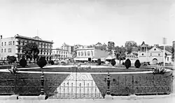 Los Angeles Plaza or Plaza de Los Ángeles is located in Los Angeles, California. It is the central point of the Los Angeles Plaza Historic District. When Spanish Governor Felipe de Neve founded the Pueblo de Los Ángeles, his first act was to locate a plaza for the geographical center from which his town should radiate. De Neve's plaza was rectangular in form—75 varas wide by 100 in length. It was located north of the church; its southerly line very nearly coincided with the northerly line of West Marchessault street. On this, the cuartel (guard house), the public granary, the government house and the capilla (chapel), fronted.[1]