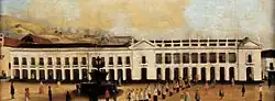 The square was reformed again in the early nineteenth century; withdraw the steps of the palace, now ended in the side streets of the building, and enabled again the passage of cars by the then called Calle de las 7 Cruces (now Garcia Moreno).