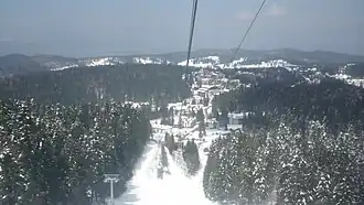 The resort is located at about 1,020 metres (3,350 feet)[1] above sea level near the city of Brașov in Romania and is easily accessible by road. Regular buses operated by Brașov Transit (RATBV) serve the 12 km (7.5 mi) route between Brașov and Poiana Brașov (lines 20 and 100). The resort also runs minibuses that take visitors from hotels to the base of the ski, these cover areas where people can hike or take a cable car to the Cristianu Mare or Postăvaru summits.