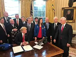 Some of the tax cuts in the Tax Cuts and Jobs Act, which Trump signed into law in 2017, were set by the law to expire in 2025. In April 2024, Trump stated at a fundraiser for wealthy donors that, if returned to office, he would seek to extend those provisions.[194]