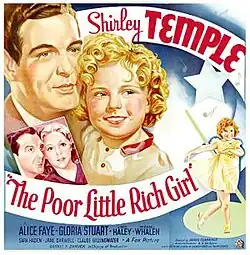 Poor Little Rich Girl, advertised as The Poor Little Rich Girl, is a 1936 American musical film directed by Irving Cummings and starring Shirley Temple, Alice Faye and Jack Haley. The screenplay by Sam Hellman, Gladys Lehman, and Harry Tugend was based on stories by Eleanor Gates and Ralph Spence, and the 1917 Mary Pickford vehicle of the same name. The film focuses on a child (Temple) neglected by her rich and busy father. She meets two vaudeville performers and becomes a radio singing star. The film received a lukewarm critical reception from The New York Times.