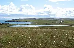 ![]() Loch an t-Siumpain is in the centre of the picture, with the houses of Portvoller beyond | |