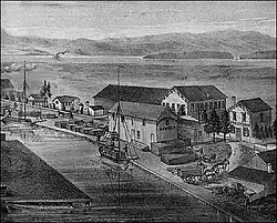 Local businessmen and civic leaders formed the Redwood City Harbor Company in the year 1912, establishing the name of the Port for the era of the early 20th century.[9] In this period competition from the railroad limited growth of the port. A number of industrial companies, however, saw the value of the Port's location, including the Alaska Codfish Company and the Morgan Oyster Company. In particular the Pacific-Portland Cement Company, moving to the Port in 1924, substantially increased shipping activity. Industrial tenants of the port include Cemex, a cement plant,[10] and Sims Metal Management, a metal recycler.[11] The port area has also grown with non-industrial businesses: Spinnaker Sailing, Agiloft, Workboard and others within the Portside Business Park.
