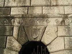 Construction of Porta Nuova began in 1532, focusing initially on the elevation toward the countryside, under the jurisdiction of Podestà Giovanni Dolfin and Captain Leonardo Giustinian, whose coats of arms are still visible on the façade,[8] as recorded in 1571 by the report of captain Lorenzo Donato.[11] An inscription, which has disappeared, located above the attic, mentioned by Scipione Maffei in 1732 and by Francesco Ronzani in 1831, was dated 1533.[8][12][13] By 1535, the elevation toward the countryside and the interior of the building were nearly completed, with only the installation of the Lion of Saint Mark, which was described as "very large and difficult to move", remaining to be done, according to a report dated 16 March that year.[8][14]