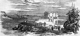 In 1906, a unit of 750 Russian soldiers was sent to Prästö, although the Åland Islands had been demilitarized since the 1856 Treaty of Paris. The islands were used for smuggling weapons and illegal publications to the Socialist revolutionaries in Russia. The smuggling route ran from Stockholm to Åland and then via Southern Finland to Saint Petersburg. In order to chase the smugglers, the Russians built a telegraph line from Åland to the Finnish mainland. One of the telegraph stations was built in Prästö.[2] During the 1918 Finnish Civil War Invasion of Åland, the Prästö telegraph station was occupied by Whites who had landed the island from Finland.[3] Today the 1913 built telegraph station works as museum which is open during the tourist season.[4]