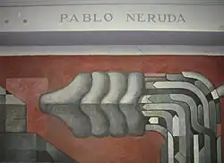 The Andes appears in the distant background, and crowning the entire mural are the verses of the Chilean poet, Pablo Neruda:
