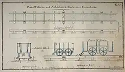 Until 1844, the Prince William railway was operated by horse-drawn wagons to transport coal. After one year of operation passengers were also transported, in particular on the return journey from Nierenhof to Hinsbeck, for which no cargo was available. By 1833 there were some coaches available for “pleasure”.