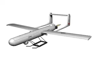 The Mohajer-3, also known as the Dorna, was designed with a new airframe for better performance.[18] It had a square body and featured a low-mounted horizontal stabilizer flush with the main wing, the only member of the Mohajer family configured this way.[18] The Mohajer-3 could be fitted with fixed landing gear, for a runway takeoff, or with skids for a JATO launch.[18] It was recovered by parachute or skid landing.[18] It was powered by an unidentified 25 hp (18.6 kW) piston engine.[2] The Mohajer-3 was announced in 1999.