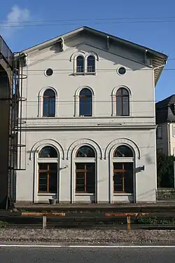 In 2002, the very rundown station buildings were acquired by the Heil brothers of Rüdesheim and completely renovated and refurbished. In addition to the entrance building, the complex includes a freight shed and an office building, all of which are heritage listed. In 2007, its private owners were given a Hessian heritage prize for its exemplary restoration.[5][6] The station has been restored as the representative entrance building in the city of Rüdesheim, as it was originally built.