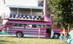 RAGBRAI has had nationwide media exposure, and other rides based on RAGBRAI have been started in other areas of the country. Bil Gilbert, after riding in SAGBRAI, wrote an enthusiastic report that appeared in Sports Illustrated.[63][64][65] After Gilbert's essay, additional writers with Sports Illustrated have mentioned RAGBRAI over the years.[66][67][68][69] In April 1984, Fredric Dannen wrote an article for the Saturday Evening Post.[70] Harry Smith of CBS This Morning rode part of RAGBRAI XXV in 1997 and aired a report.[71] In addition, numerous articles about the ride have appeared over the years in The Wall Street Journal.[72][73][74] Following RAGBRAI XLVII in August 2019, Lonely Planet listed RAGBRAI as one of the top 50 bicycle rides in both North America and South America combined in the book Epic Bike Rides of the Americas and, in the book, included Dennis Coello's picture of a brightly colored support vehicle with the lyrics to The B-52's song "Love Shack" on the side of the Iowa Falls middle school principal Jeff Burchfield's Team Love Shack RAGBRAI bus of Hardin County, Iowa which supports the group of about 20 riders on Team Love Shack, a RAGBRAI team which was established with about 5 or 6 riders in 2007 for RAGBRAI XXXV but, in 2010 for RAGBRAI XXXVIII, purchased an old school bus as the support vehicle for Team Love Shack and had the bus painted accordingly according to Scott Kosanke of Team Love Shack.[75][76][77][78][79][80] Although RAGBRAI XLVIII was postponed from 2020 until 2021 because of the Coronavirus pandemic, news media covered Team Love Shack of Hardin County and especially the Eldora, Iowa area participating in an unofficial ride along the XLVIII route during July 2020.[79][81] Also in August 2019, CNN featured a travel story "RAGBRAI: A newbie's guide to cycling across Iowa" by Christi Scott.[82]