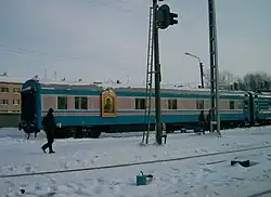 In 2009, an ordinary passenger car on the Krasnoyarsk Railway was converted into a temple at the expense of patrons.[25] The initiative came from the Association of Construction and Transport carriers Dal'-Express (Russian: «Даль-Экспресс»). It turned to Vladimir Yakunin, President of Russian Railways, and received support. The purchase of the car and the repair and re-equipment work were carried out at the expense of enterprises that were members of the Dal'-Express. The Krasnoyarsk Railway assumed the cost of operating the car.[29]