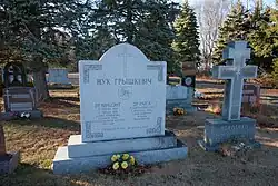 Graves of Vincent Žuk-Hryškievič and his wife Raisa Žuk-Hryškievič in Belarusian Saint Mary of Žyrovičy Cemetery in New Brunswick, New Jersey, USA.