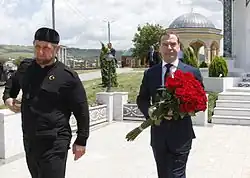 After an attack on the Church of Archangel Michael in Grozny on 19 May 2018, Kadyrov stated that he had personally overseen the operation to eliminate the attackers.[105] On 26 September, he signed an agreement with Yunus-bek Yevkurov, the Head of Ingushetia, resolving the border dispute between the two Russian republics.[106] The agreement seen as grossly unfair to Ingushestia ignited widespread protests eventually leading to resignation of Yevkurov on 24 June 2019.[107][108][109][110]