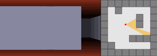 The purpose of the grid based levels was twofold — ray-wall collisions can be found more quickly since the potential hits become more predictable and memory overhead is reduced. However, encoding wide-open areas takes extra space.