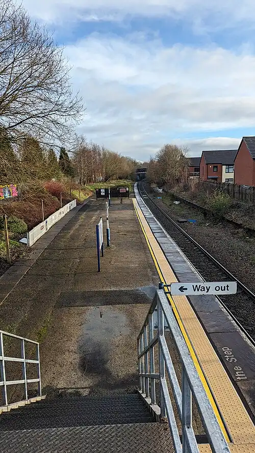 Between April 2013 and March 2014, Reddish South was the third-least-used station in Great Britain, after Teesside Airport and Shippea Hill, with only 26 recorded passengers.[5] In 2015, passenger figures from the Office for Rail and Road showed that Reddish South had become Britain's fourth-quietest railway station.[6] In January 2020, the station was named as the UK's third quietest, with just 60 entries and exits between 1 April 2018 and 31 March 2019.[7] By 2023, the station had become the fifth least used in the UK, with 100 entries and exits.[8]