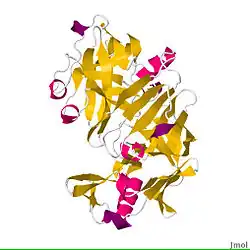 10. ^ PDB: 4CMS​; Newman M, Safro M, Frazao C, Khan G, Zdanov A, Tickle IJ, et al. (October 1991). "X-ray analyses of aspartic proteinases. IV. Structure and refinement at 2.2 A resolution of bovine chymosin". Journal of Molecular Biology. 221 (4): 1295–309. doi:10.1016/0022-2836(91)90934-X. PMID 1942052.