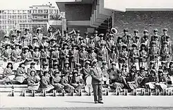 Founded on August 1, 1951, the Representative Central Band of the Romanian Army is the seniormost band in the Armed Forces and carries on a long-standing heritage of military music in Romania. In the more than half century since its founding, the band has become the benchmark for all similar bands in the country. The band is composed of at least 70 Non-Commissioned Officers (NCOs) and is by three officers/conductors who are all graduates of the National Music University in Bucharest. The band has been known to perform all types of music, with marching music and classical being the priority type of music, and modern, jazz, and folklore also being used. The band is known for its consistent presence at numerous protocol events such as honors and military ceremonies, and frequently supports army units with musical accompaniment. Protocol events that the band takes part in includes the Great Union Day Parade in the capital, as well as the state arrivals ceremony for foreign leaders visiting the President of Romania at his/her residence. and on the most important scenes Bucharest and the country. The representative band has released many CDs, audio/video tapes, and other forms of media over the years. It commonly performs on Romanian TV channels such as Romanian Television and radio stations like Radio Romania. It has taken part in many public performances in and around the country. Concerts, military tattoos, and musical parades are not uncommon for the band, which visited over 12 countries in Europe, including France, Poland, China, Italy, Denmark, and Germany.[4][5][6]