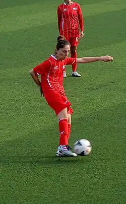 She made her first appearance in the national team taking part at the UEFA Women's Euro 2009 qualifying match against Northern Ireland on November 18, 2006.[7]