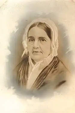 Gassaway Watkins, born in 1752, was admitted as an original member of The Society of the Cincinnati in the state of Maryland when it was established in 1783.[5] He later served as vice president (1831-1839) and president of the Maryland Society (1839-1840), serving in the latter capacity until his death.[6] When he died in 1840, he was the last surviving original member of the Maryland Society, and reportedly of the Old Line. General George Washington reportedly referred to the Maryland Line as the "Old Line" due to the quality and length of their service during the Battle of Long Island.[7] He was also one of the Maryland 400. Colonel Watkins served under General William Smallwood at Long Island and at the Battle of Cowpens, among other engagements. Colonel Watkins was married three times: first to Sarah Jones, who died within a year without issue from the marriage; then, to Ruth Dorsey, with whom he had Gassaway, Bonaparte, Thomas, Turenne, Charlotte and Ann Watkins; and, following Ruth's death, he married Elenora Bowie Clagett on April 26, 1803, with whom he had Caroline Lyles Watkins (1804-1896), Camsadel Bowie Watkins (1805-1842), Eleanor Clagett Watkins (1807-1868), Amanda Watkins (1809 - ), Elizabeth Louise Watkins (1815 - ), Priscilla Agnes Watkins (1817-1893), Margaret Gassaway Watkins (1819-1896), Albina Charlotte Watkins (1822-1899), William Washington Watkins (1810-1880) and John Sebastian Watkins (1813-1893).