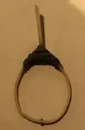 Penannular ring Found in gold or gilded metal from Bronze Age Britain, these small thick incomplete circles are the wrong size and shape to be finger-rings and were probably worn as nose or ear-rings or attached to the hair or clothing.[32]