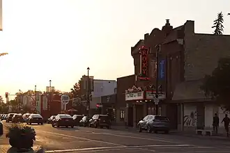 The Roxy Theatre, August 2024Roxy Theatre (1930) – It was built during the onset of the Great Depression. The interior was decorated in a Spanish Villa style with the walls covered with small balconies, windows and towers that gave the impression of a quaint Spanish village. The ceiling was painted dark blue and had twinkling lights set in the plaster to give the impression of the night sky. The Roxy was for a time called the Towne Cinema, then closed in 1995. It was purchased and restored by Magic Lantern Theatres, and reopened under its original name in 2005.[22]